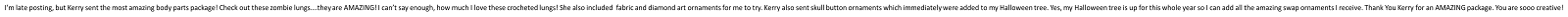 Kerry also sent skull button ornaments which immediately were added to my Halloween tree. Yes, my Halloween tree is up for this whole year so I can add all the swap ornaments I receive. Thank You Kerry for an AMAZING package. You are sooo creative!
